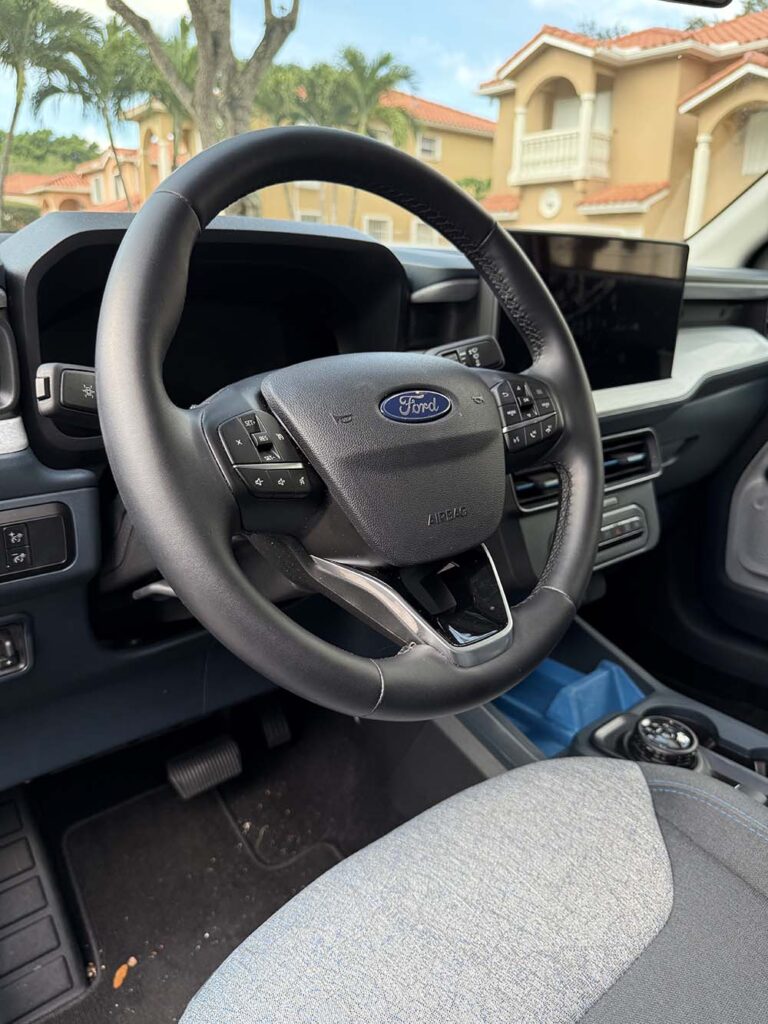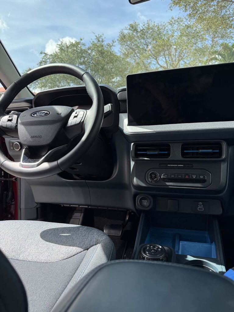 La Maverick 2025 no solo se conduce, se experimenta. Su cabina es un centro de comando digital donde cada elemento está pensado para facilitar, entretener y conectar. La pantalla táctil de 13.2 pulgadas con SYNC 4 es el corazón tecnológico del vehículo, permitiendo acceso intuitivo a navegación, música, llamadas y funciones clave sin distracciones