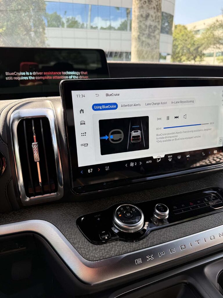 BlueCruise está disponible en toda la línea Lincoln, además de en Mustang Mach-E, F-150 Lightning, F-150, Expedition y Explorer. El primer vehículo con esta tecnología estuvo disponible en el Mustang Mach-E 2021 y en la F-150 2021. La interfaz digital es independiente de esto.