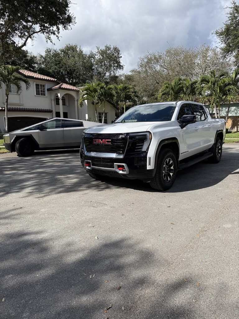 La batalla del mañana: dos bestias eléctricas en Miami AUTOS 2026 ELECTRIC ELECTRICO NOTICIAS TECNOLOGIA by autorutas - January 17, 2026January 17, 20260 Tesla Cybertruck Foundation Series y GMC Sierra EV AT4 Max Range 2026 protagonizaron un encuentro único que anticipa cómo el futuro de las pickups ya está aquí. Especial para AUTORUTAS/TEXTOS Y FOTOS: DAVID TAMARIZ / En las calles soleadas de Miami se vivió un choque de titanes que parecía sacado de una película futurista. De un lado, el Tesla Cybertruck Foundation Series, esa edición limitada que rompe cualquier molde con su carrocería de acero inoxidable y su diseño angular. Al volante, José Romero, orgulloso propietario, nos ofreció un recorrido exclusivo con su monstruo futurista. Durante la experiencia explicó cómo se siente conducir un vehículo que parece más nave espacial que pickup: aceleración brutal, silencio absoluto y una conducción que redefine lo que entendemos por movilidad eléctrica. El Cybertruck Foundation Series despliega alrededor de 600 caballos de fuerza, con un torque cercano a los 740 lb-pie, capaz de acelerar de 0 a 100 km/h en apenas 4.3 segundos. Su batería de 123 kWh le otorga una autonomía de hasta 547 kilómetros, mientras que su capacidad de carga alcanza 1.5 toneladas y puede arrastrar hasta 3 toneladas. Es potencia pura envuelta en un diseño disruptivo que parece salido de un futuro distópico. Tesla Cybertruck Foundation Series, presentado por su propietario José Romero, quien nos mostró la experiencia de conducir esta nave del mañana. Del otro lado, la tradición convertida en revolución: el GMC Sierra EV AT4 Max Range 2026. Este coloso eléctrico fue presentado por David Tamariz de Autorutas, quien mostró cómo la fuerza americana puede transformarse en energía limpia sin perder un gramo de poder. Con su autonomía récord de 770 kilómetros, su plataforma de 800 V y su sistema de carga rápida, el Sierra EV demuestra que la electrificación no significa renunciar a la rudeza ni a la herencia de las grandes pickups. El Sierra EV AT4 ofrece hasta 725 caballos de fuerza, con tracción integral y un enfoque todoterreno que lo convierte en un verdadero guerrero de la carretera. Su aceleración de 0 a 100 km/h ronda los 4.5 segundos, y mantiene capacidades de remolque y transporte propias de una pickup GMC: robustez, versatilidad y presencia intimidante. De poder a poder, dos filosofías distintas, un mismo destino: el futuro se escribe en voltaje. Tesla apuesta por la ruptura estética y la exclusividad tecnológica; GMC responde con tradición, robustez y alcance imponente. En Miami, este encuentro no fue solo una comparación de vehículos, fue un adelanto de la nueva era de la movilidad, donde el poder ya no se mide en cilindros, sino en energía. Share on Facebook Share Share on TwitterTweet Share on Pinterest Share Share on LinkedIn Share Send email Mail Print Print