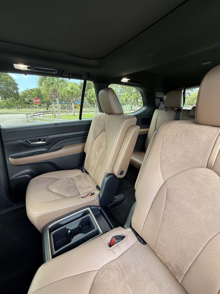 El Grand Highlander 2025 no se conforma con ser amplio: redefine lo que significa viajar en un SUV familiar. La primera impresión al abrir sus puertas es la sensación de inmensidad, con tres filas de asientos que no son un compromiso, sino una declaración de comodidad. La tercera fila, tantas veces relegada en otros modelos, aquí es un espacio digno de adultos, con suficiente altura y distancia para que los viajes largos no sean un sacrificio. Incluso con todas las plazas ocupadas, el área de carga sigue siendo generosa, demostrando que Toyota pensó en familias que necesitan espacio real, no solo cifras en un catálogo.