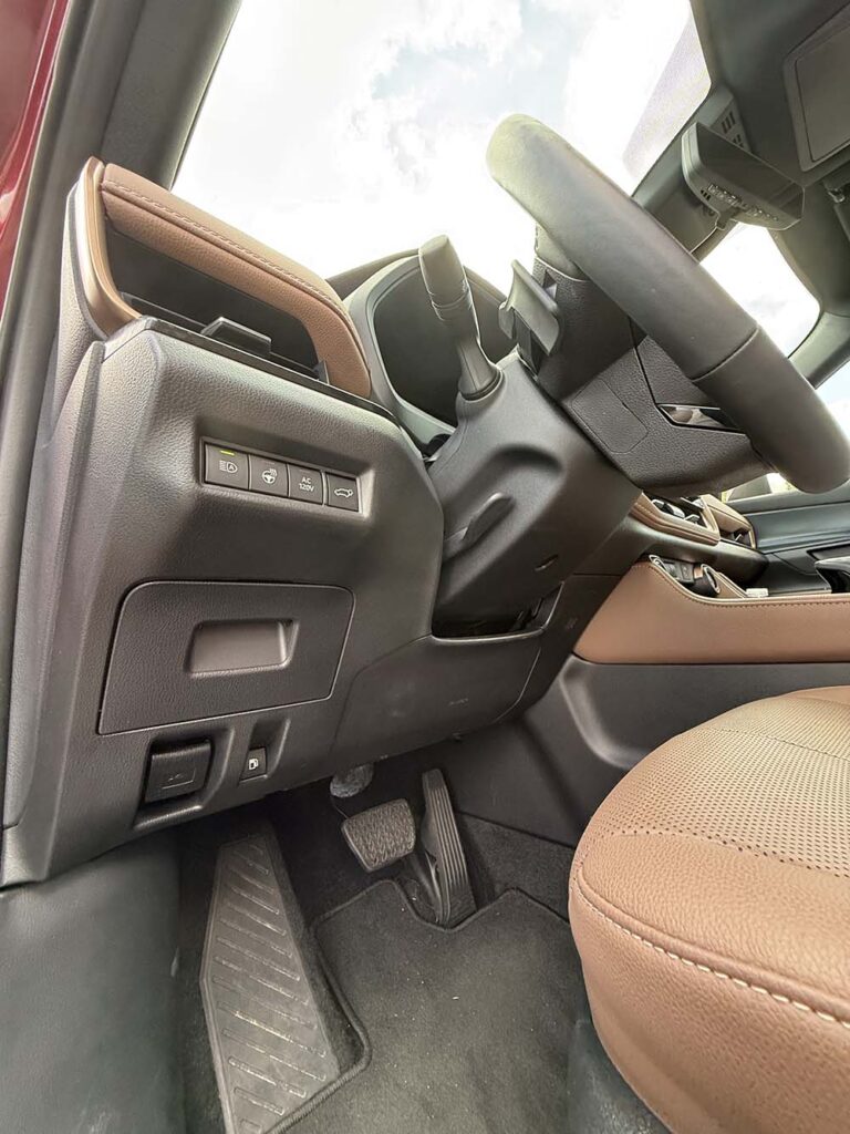 La transmisión automática de 8 velocidades es el puente perfecto entre motor y carretera. Sus cambios son suaves, casi imperceptibles, pero detrás de esa discreción se esconde una precisión que sabe cuándo liberar toda la fuerza y cuándo dosificarla con elegancia. Toyota ha trabajado en calibrar esta transmisión para que el Grand Highlander se sienta siempre en control, ya sea en un tráfico urbano denso o en una autopista abierta.